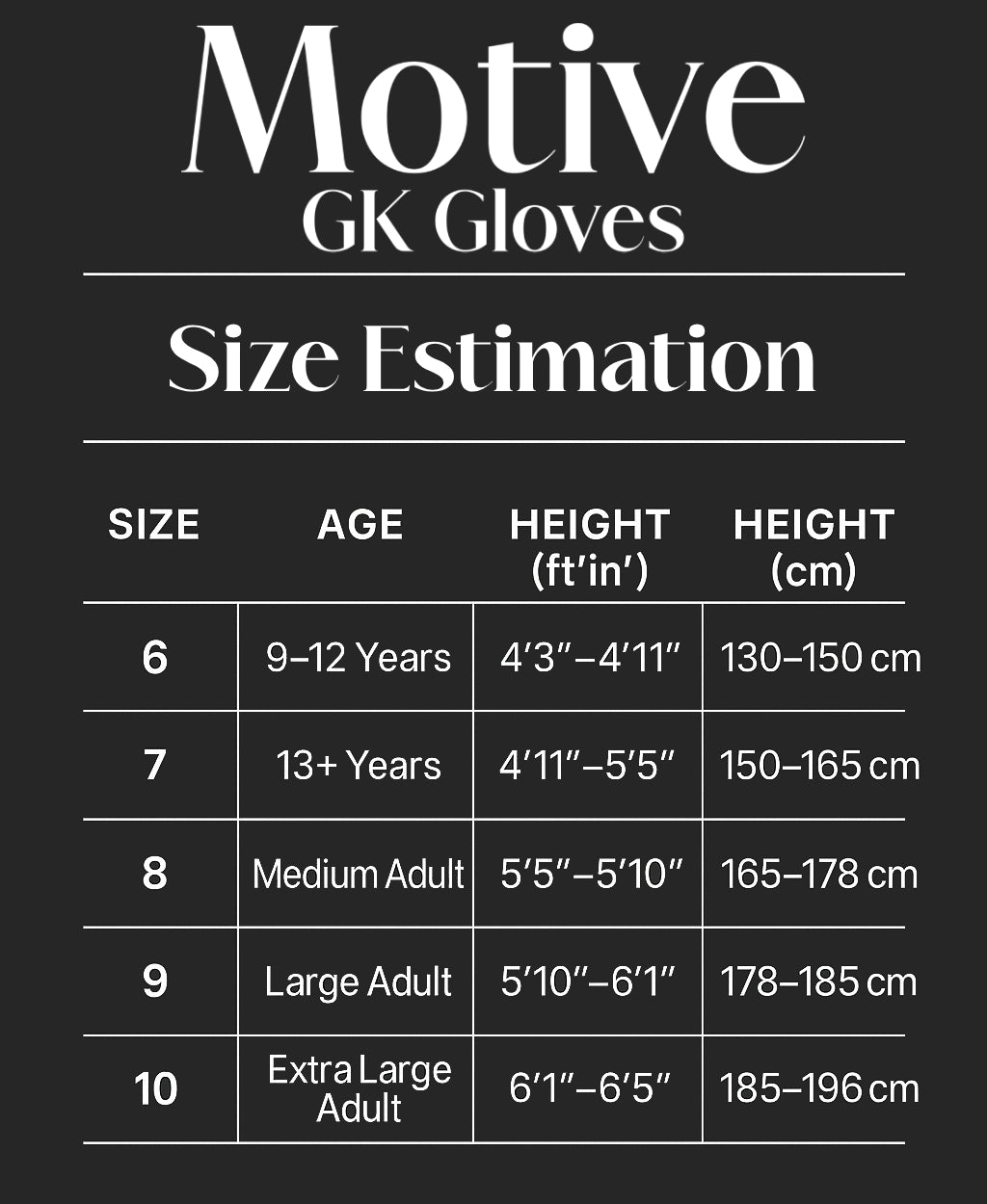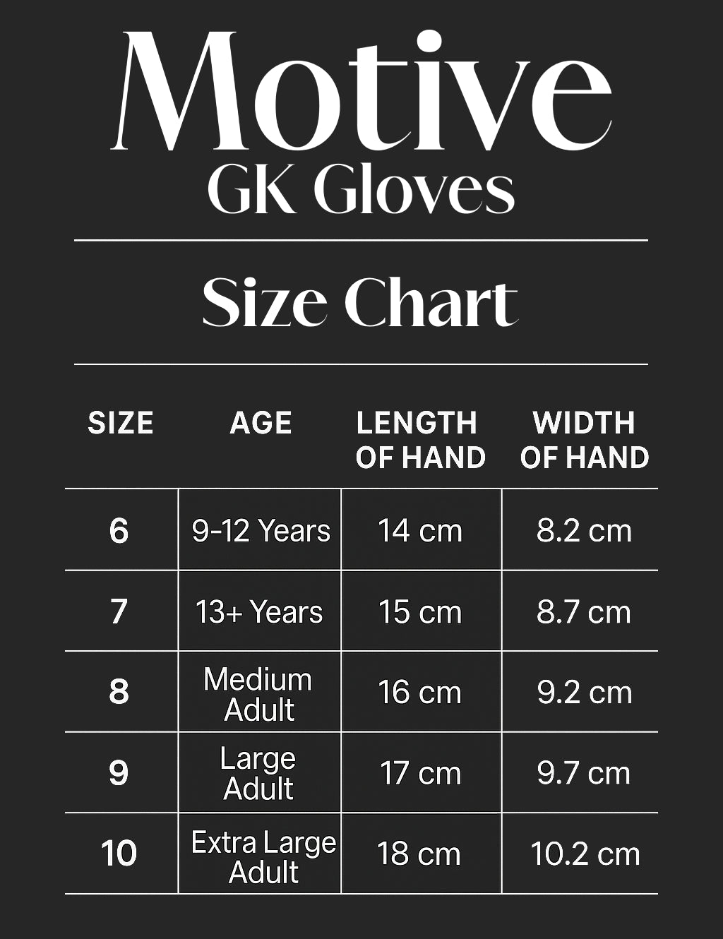 Need help? Email: Orders@motivegkgloves.com and we’ll guide you to the perfect fit.